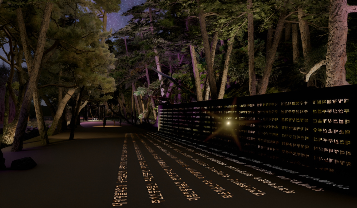 | 영축총림문 | 빛이 머무는 길 | 자연 경관과 어우러진 조명 연출 |